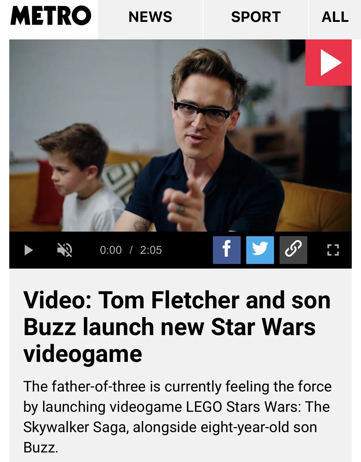 A short piece promoting the new Star Wars game for Warner Brothers UK with Tom Fletcher and his son Buzz.